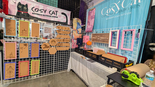 My shop focuses on functional wall decor in the form of cork boards, good for general use and pin/charm/sticker displays. The designs are applied and the frames are made all in my studio space using both a laser engraver and 3D printer. Customization is the heart of my brand. I believe in a board and style to fit every collection. I bring that same value to every convention, allowing customers to customization their boards right at my booth.