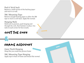 All corks come with a sticky back that is similar to 3M, but you can also use your own mounting tapes or brass hanging nails.